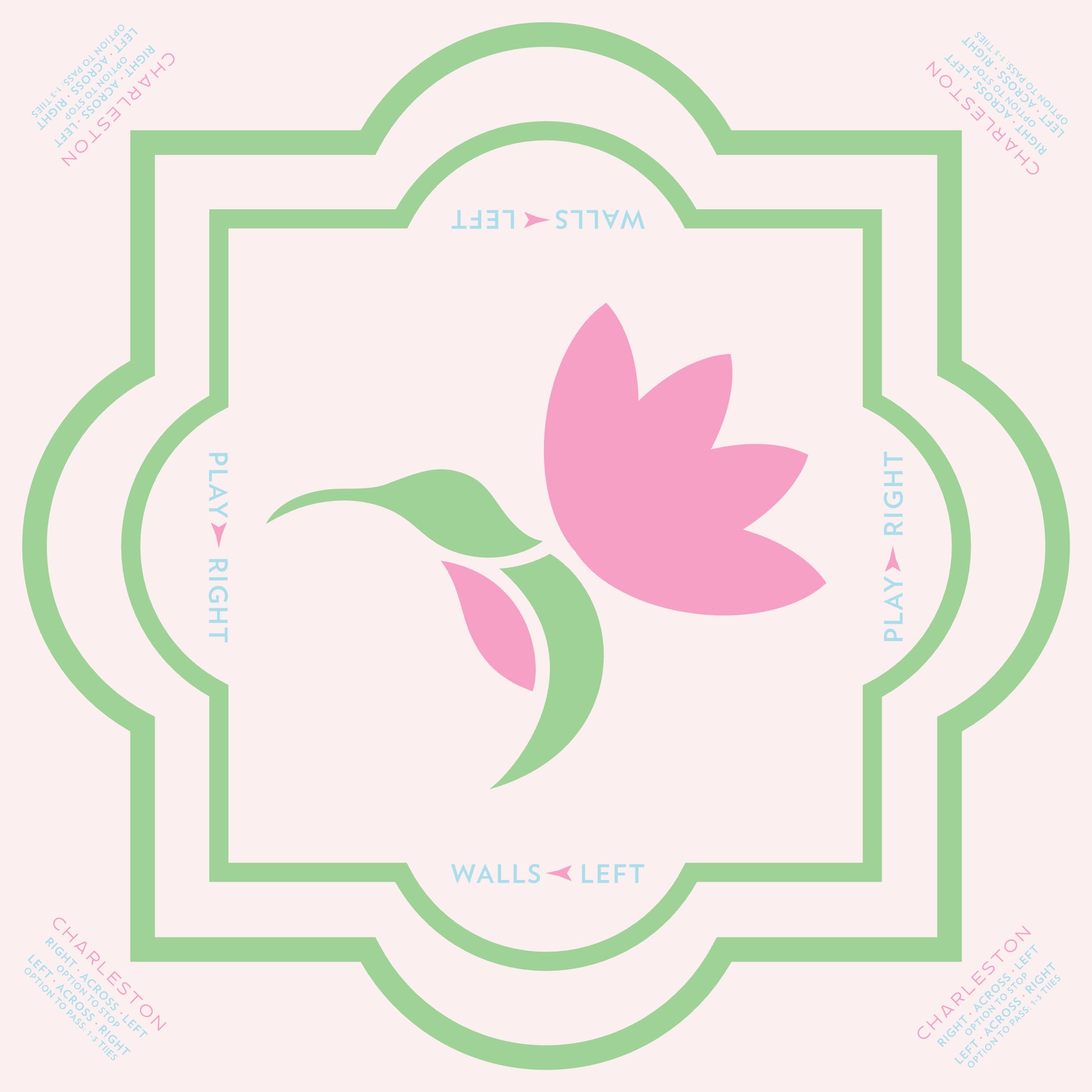 • Design: blush pink base with green border and our signature hummingbird center graphic