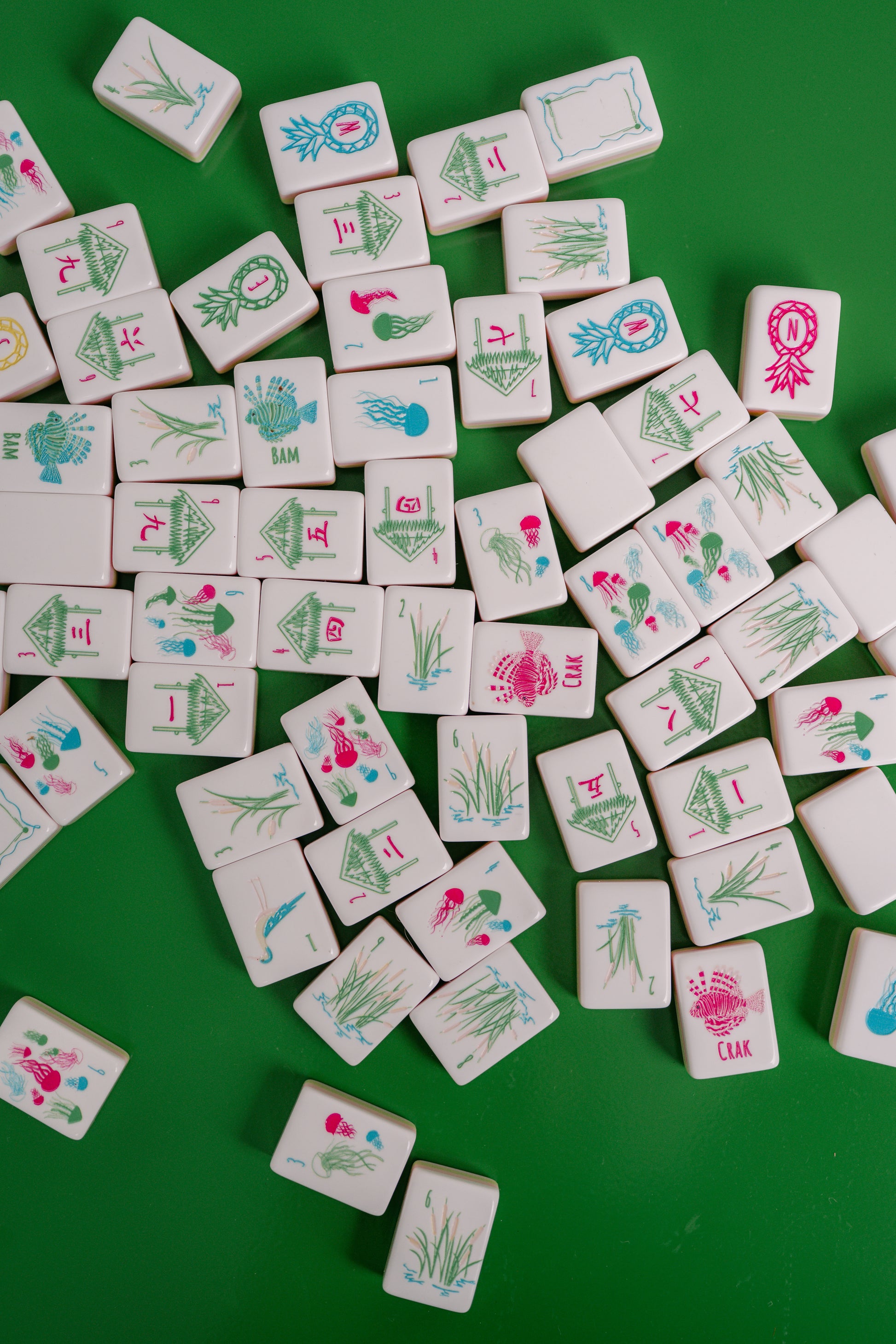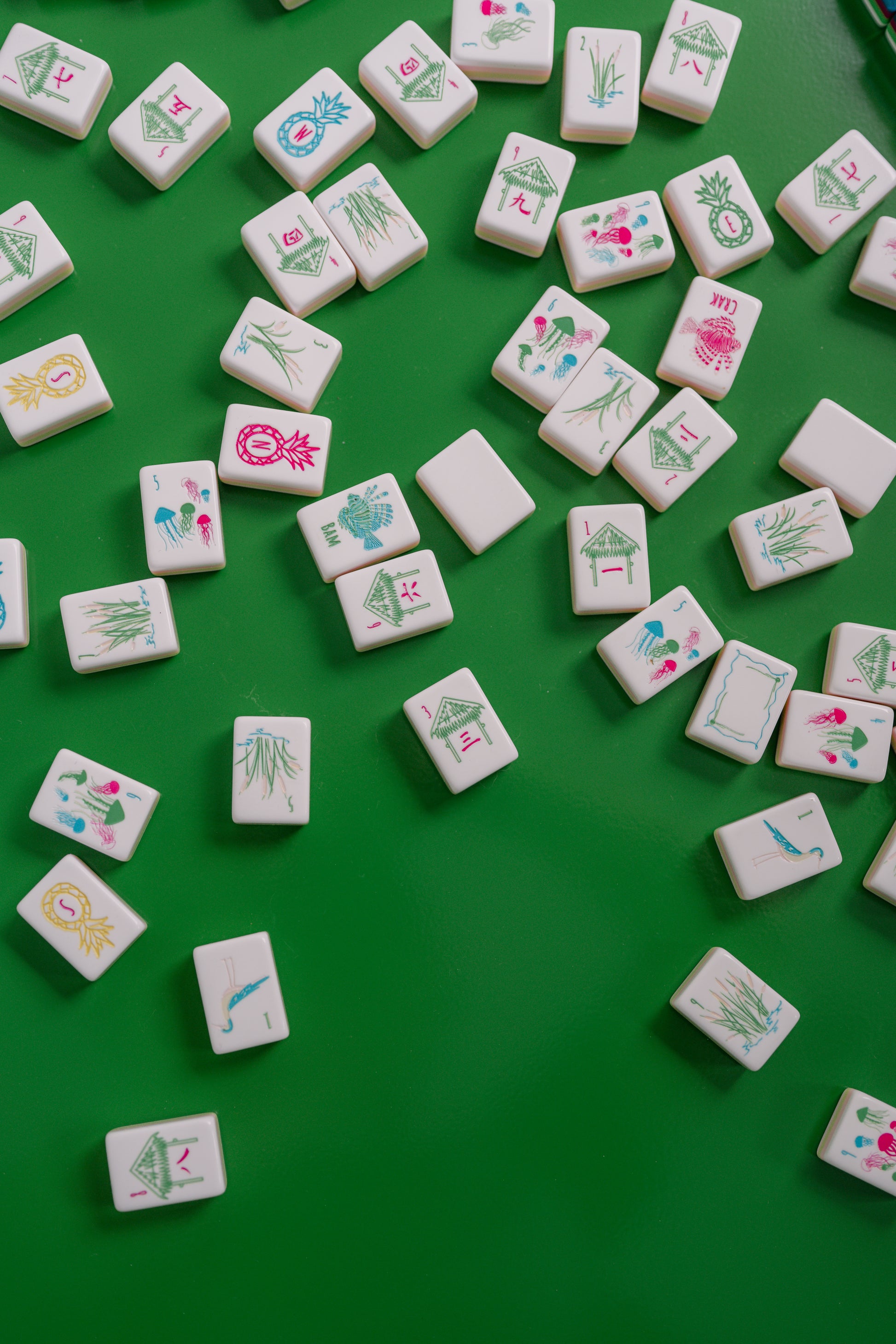 - 1 through 9 Bams, Craks, and Dots (4 of each) — 108 tiles